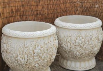 青石浮雕園林景觀花盆雕塑