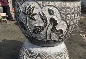 大型青石浮雕花盆雕塑