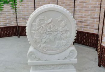 中式風格天然漢白玉石雕抱鼓浮雕門墩,花開富貴