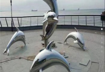 企業廣場噴泉水池不銹鋼拋光工藝海豚群擺件