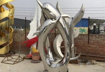 公園街道創意不銹鋼水中游泳的海豚雕塑