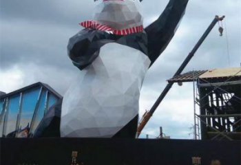 可愛熊貓雕塑,擺放玻璃鋼足球,為庭院添彩