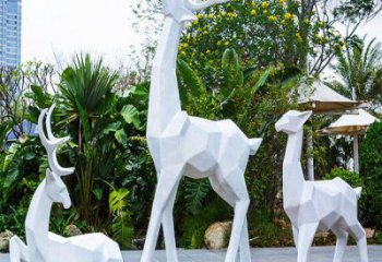 幾何玻璃鋼梅花鹿雕塑是一種新型的雕塑藝術,它利用玻璃鋼和玻璃,以及白色的梅花鹿塑造出幾何形狀的雕塑,在公園或其他公共場所裝飾,以抽象的方式表達出生活中的美好。